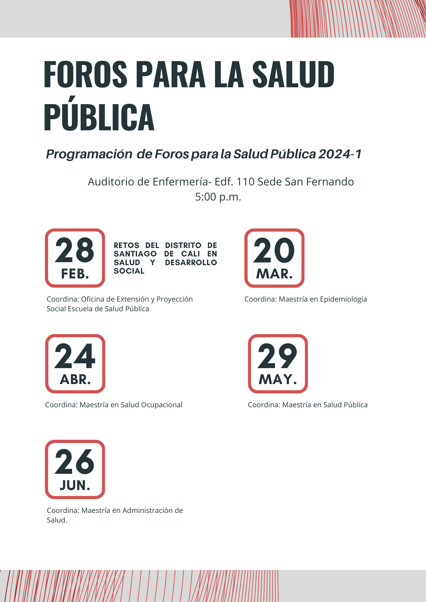 Este semestre prográmate con los Foros para la Salud Pública, que organiza la Escuela de Salud pública de la Universidad del Valle.