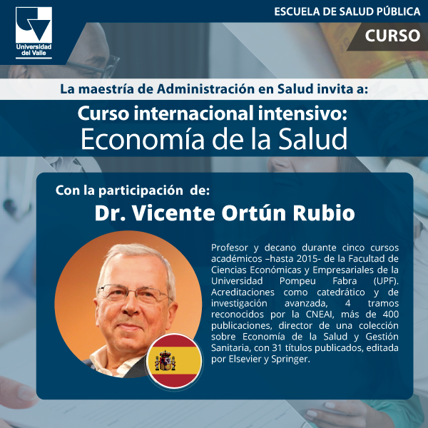 El Doctor Vicente Ortún Rubio, de la Universidad Pompeu Fabra de Barcelona, España, participó del Curso Internacional de Economía de la Salud desarrollado el 29 y 30 de noviembre de 2018, organizado por la Doctora Maria Fernanda Tobar, Coordinadora de la Maestría de Administración en Salud.
